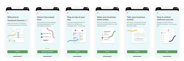Treatwell Connect • 25th February 2021 Web copy: Self-onboarding flow Our aim is to help our partners set themselves up quickly, efficiently, and without needing to speak to anyone. This is our first self-onboarding draft which I wrote and tested with our partners.